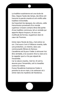 Installez l’application de l’Alliance Essénienne, ce qui affichera l’icône sur la page d’accueil de votre smartphone quelques secondes plus tard, dans la liste des applications.